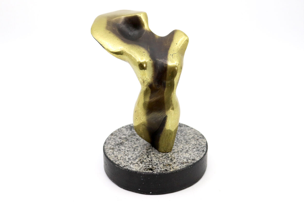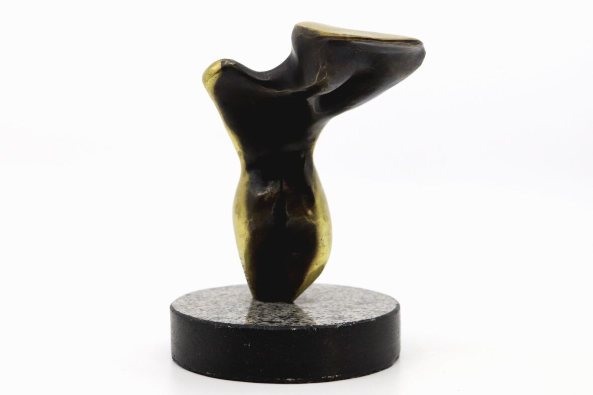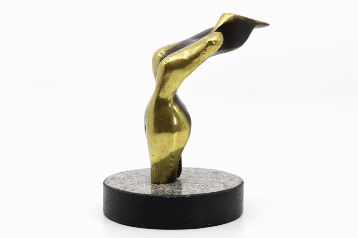 Petite sculpture en bronze à patine dorée posant sur un socle en granit.
