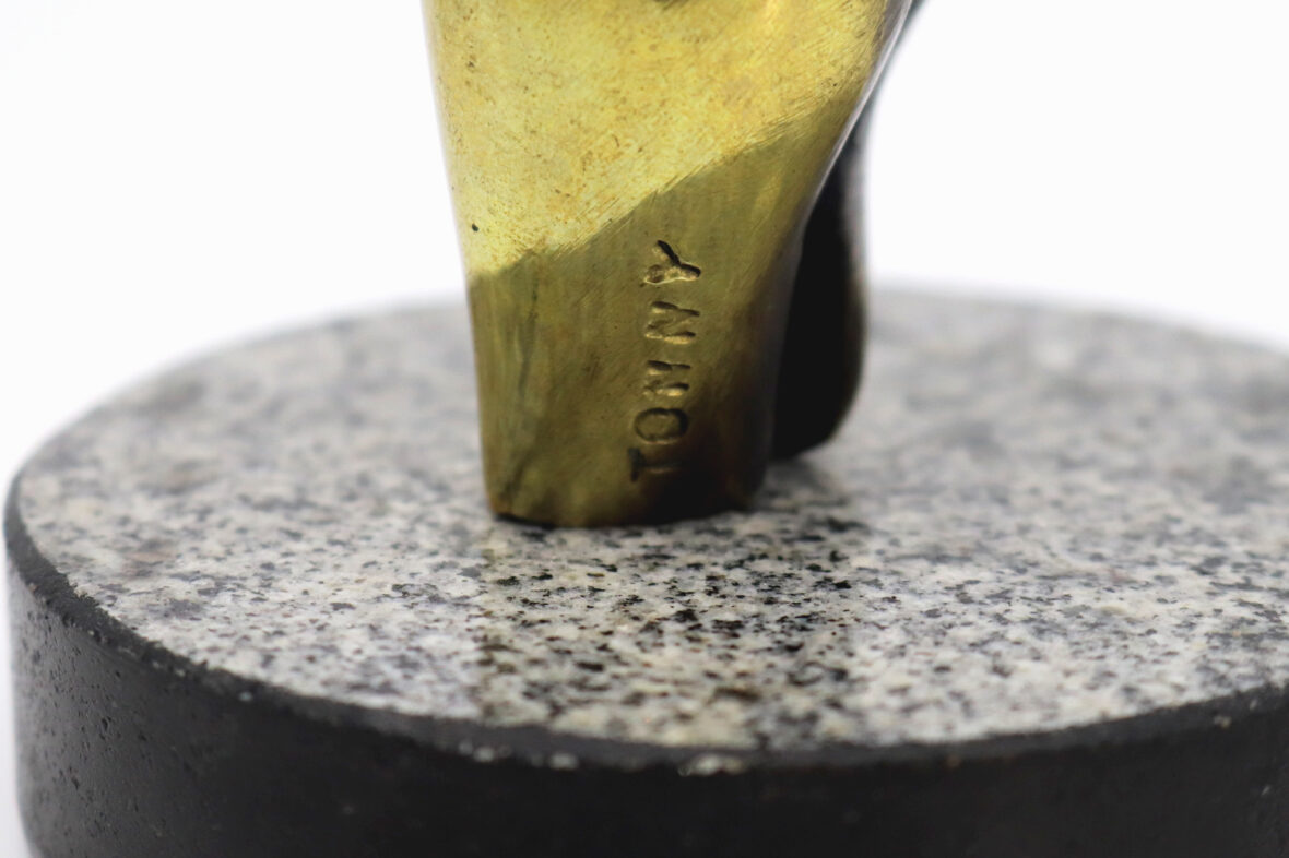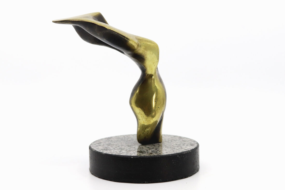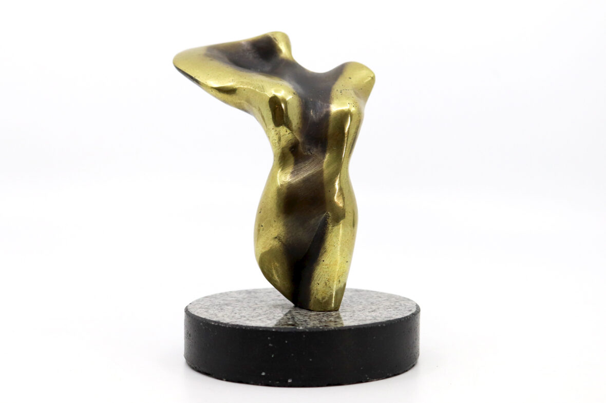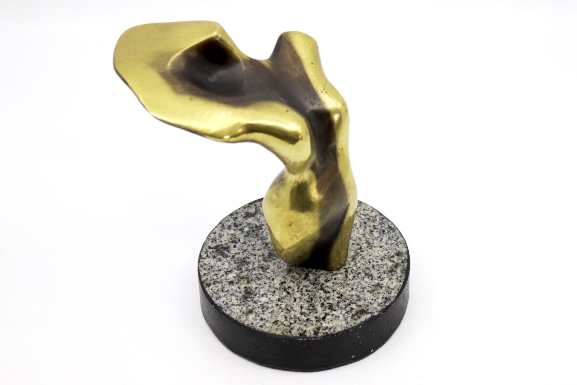 Petite sculpture en bronze à patine dorée posant sur un socle en granit.