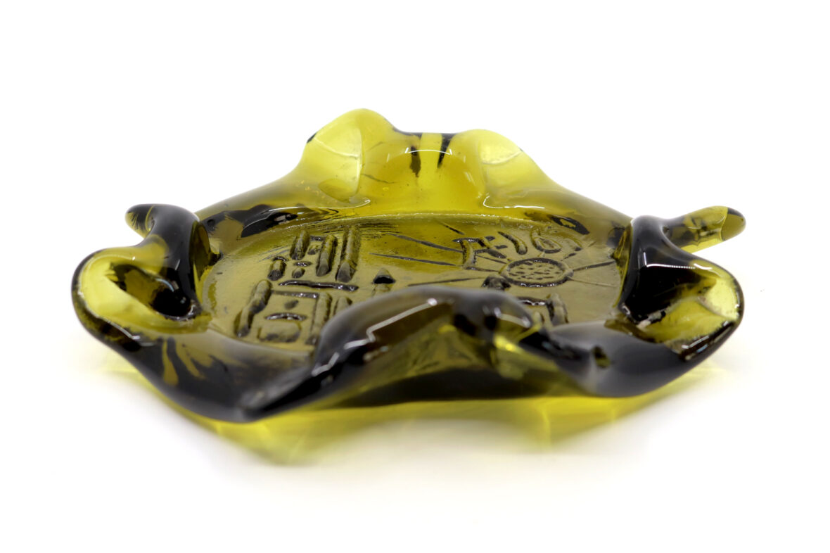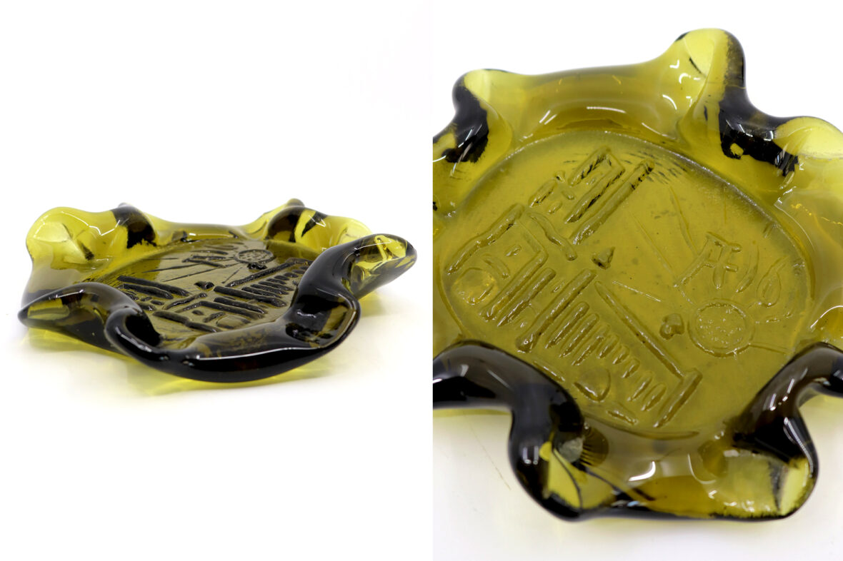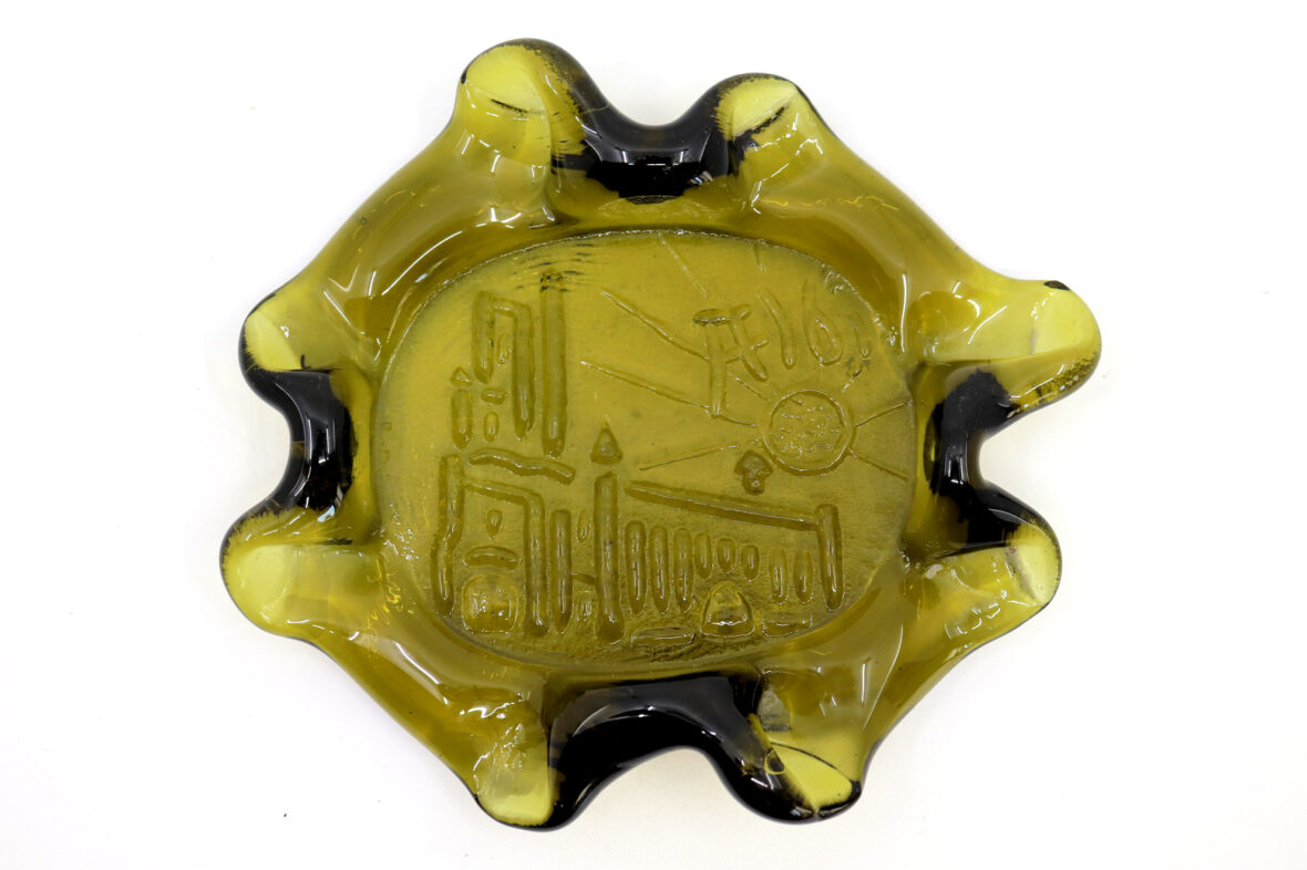 Vide-poche en verre teinté vert olive à décor de la Cathédrale Sainte Cécile.