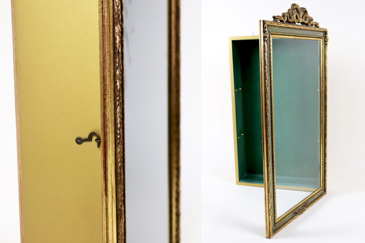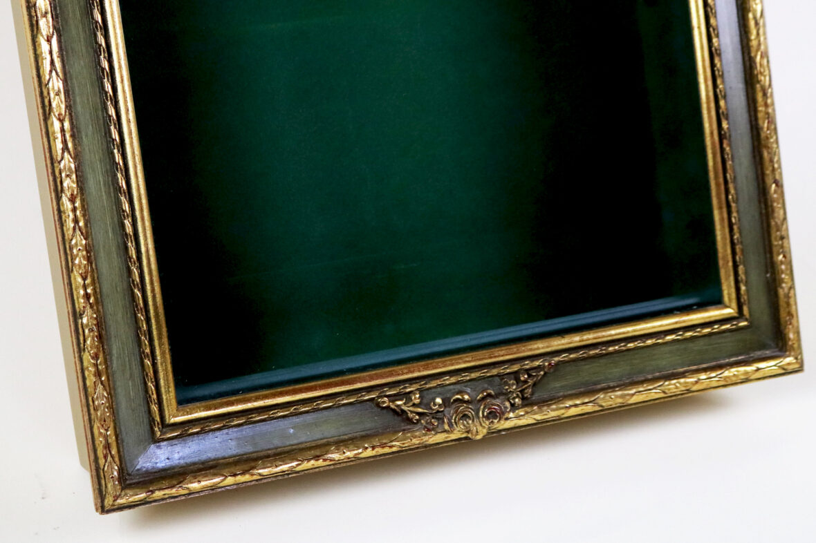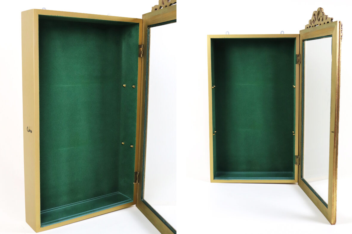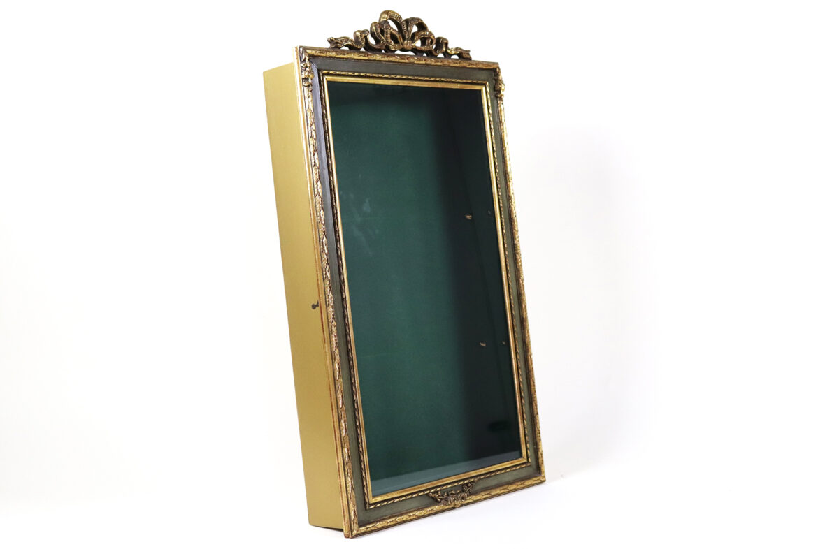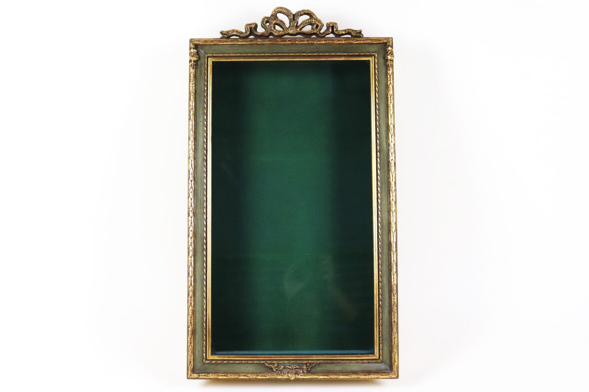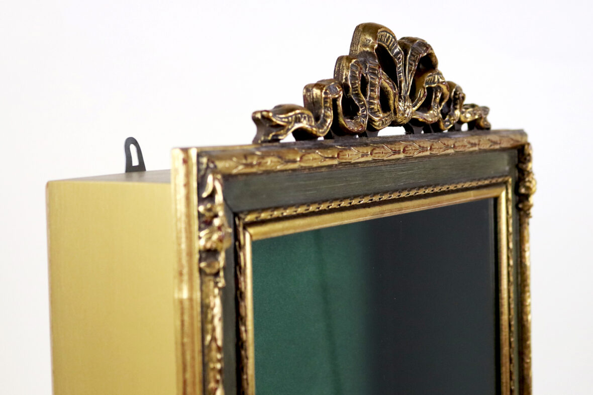 Vitrine murale en bois sculpté et doré à décor d’un nœud.