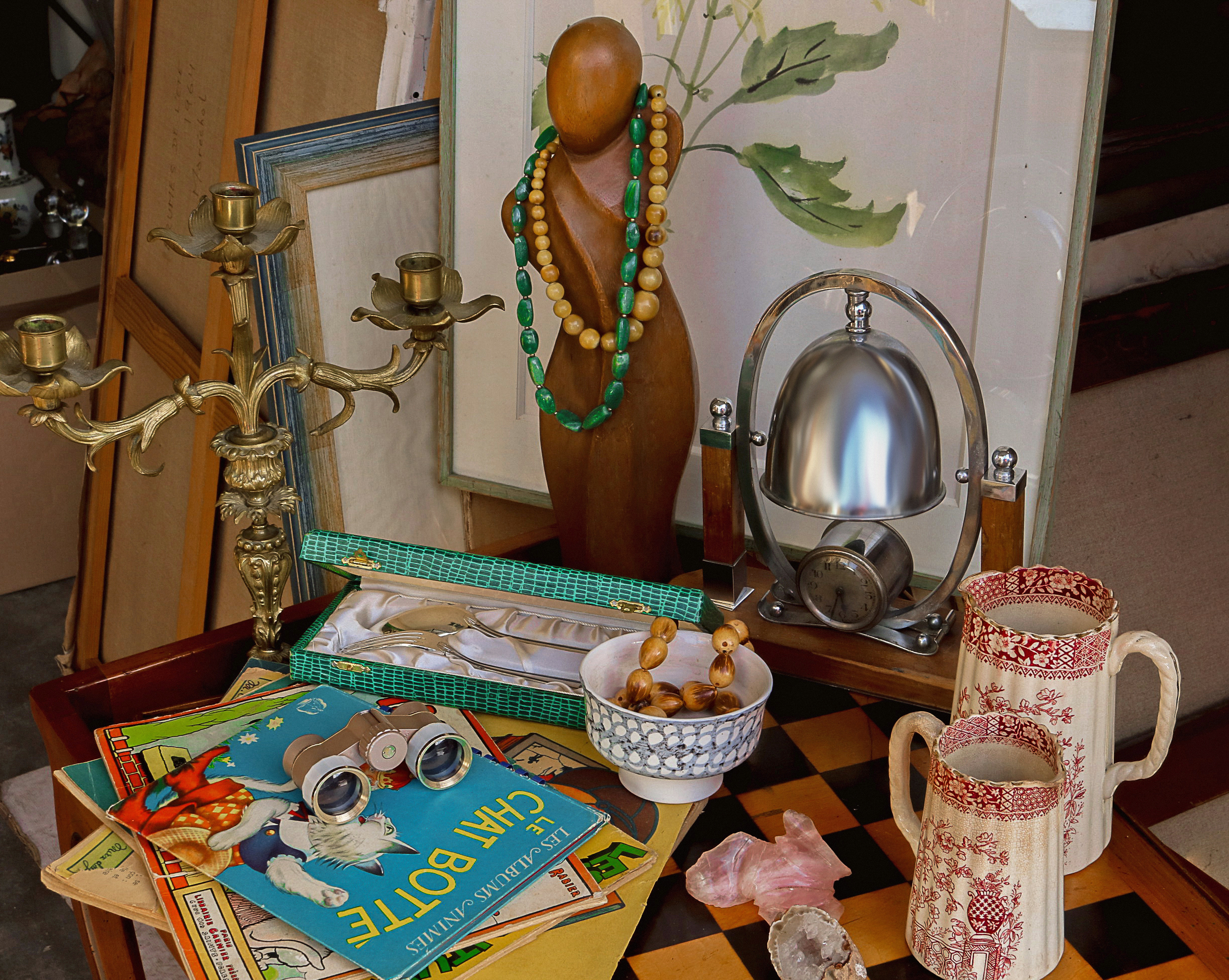 - lot 23 : Ensemble en métal argenté comprenant notamment plusieurs parties de ménagères dépareillées dans des coffrets et un pichet à citronnade. : adjugé 128€ fi.