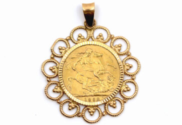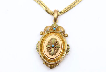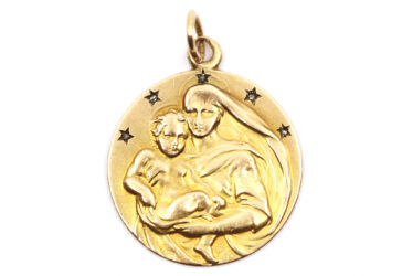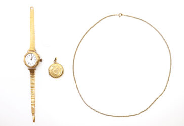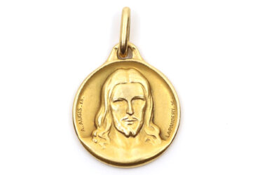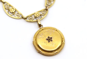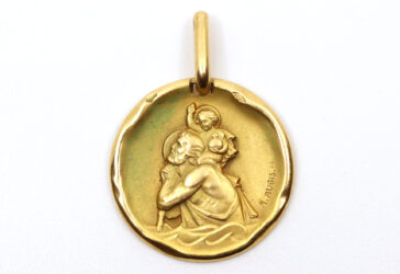 Ensemble pour enfant comprenant : – un pendentif en or jaune stylisant un fer à cheval….