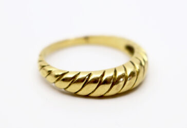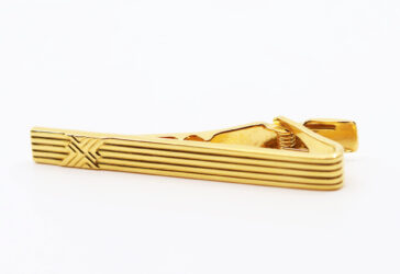 LANVIN Pince à cravate en métal doré à décor de cannelures.