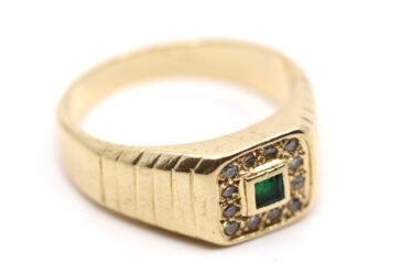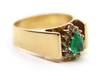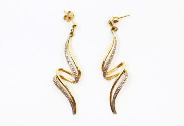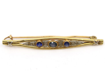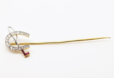 Épingle de cravate en or jaune à décor d’un fer à cheval et d’une cravache pavés