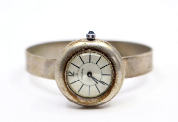 A. BERTHELAY Montre bracelet de dame en argent 800. Le boîtier rond à cadran émaillé…