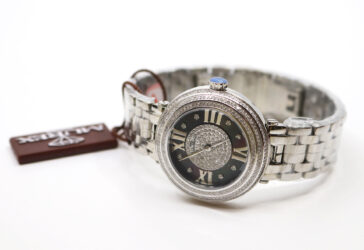 MUREX SWISS Montre bracelet de dame en acier, la lunette et le cadran sertis de 335…