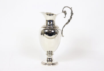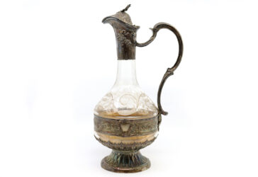 PFISTER TOULOUSE Aiguière en verre gravé à décor de rinceaux feuillagés. Monture