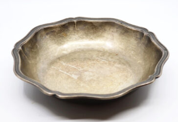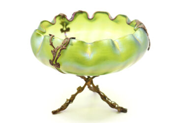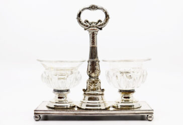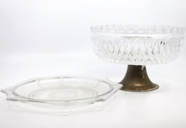 Coupe à fruits en cristal taillé en pointes de diamant, le piètement en métal argenté….