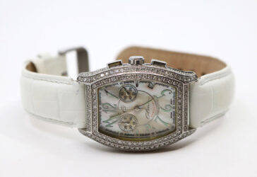 SAINT HONORÉ PARIS Montre chronographe en acier, la lunette sertie de pierres blanches,…