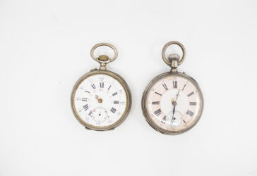Lot de deux montres à gousset en argent, cadran émaillé à chiffres romains, trotteuse…
