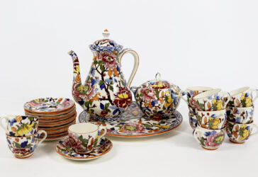 GIEN Service à thé modèle « Pivoines » comprenant une théière, un sucrier, 12 tasses…