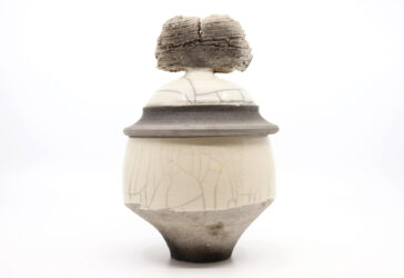 LECOMTE (XXe) Pot couvert en céramique raku. Haut. : 20 cm – Diam. : 13 cm
