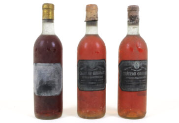 Ensemble comprenant : 2 bouteilles 1er Cru SAUTERNES Château Guiraud 1962. (HE –