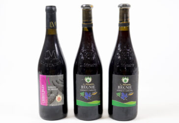 Ensemble de trois bouteilles BEAUJOLAIS dont 1 btle Régnié, Domaine de L’Ampélopsis,…