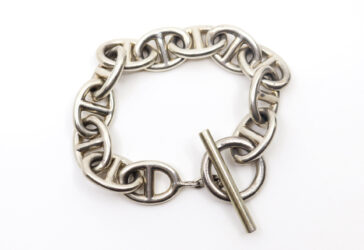 HERMÈS (dans le goût de) Bracelet gourmette à mailles articulées en argent. Poids…