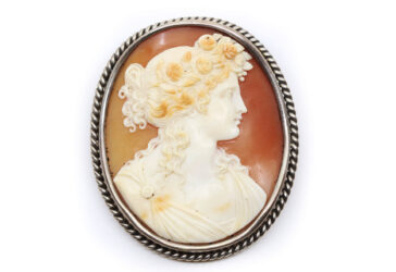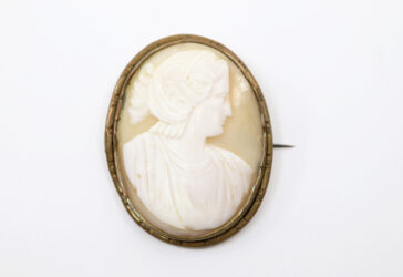 Camée sur coquille à décor d’un profil à l’antique dans un entourage en laiton. Début…