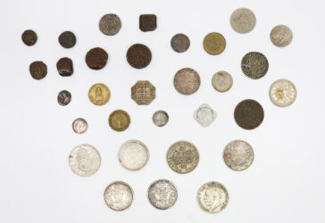 Collier réalisé avec des monnaies en argent diverses, Angleterre, Espagne, Autriche,…
