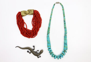 Ensemble comprenant : – un bracelet formé de 16 rangs de perles corail, le fermoir…