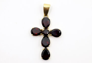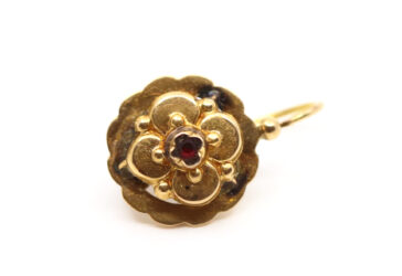 Épingle de cravate en or jaune ornée d’une marguerite de grenats. Poids : 2,6 g