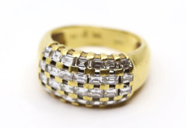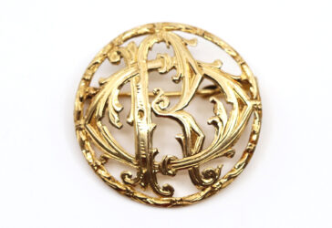 Pin’s en or jaune à décor d’un mot ajouré, orné d’une petite rose. Poids brut : 1,5…