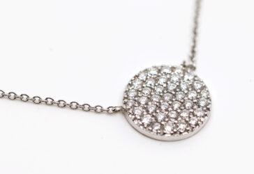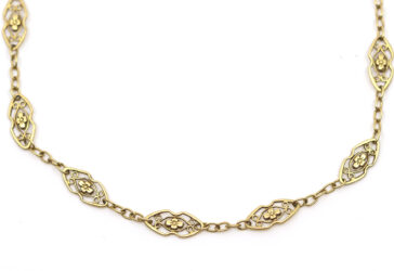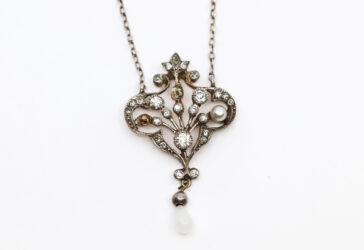 Collier en argent formé d’une chaîne retenant un pendentif à décor ajouré de rinceaux…