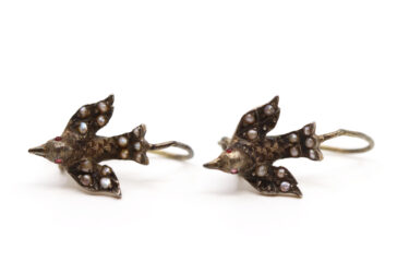 Paire de boucles d’oreilles en argent à décor d’oiseau aux ailes déployées serties…