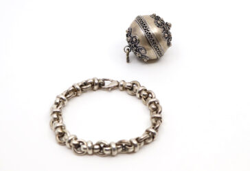 Bracelet gourmette en argent à mailles articulées. Poids : 42,6 g On y joint un pendentif…