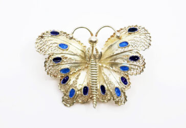Broche papillon en argent filigrané et émaillé. Poids brut : 7,4 g
