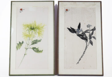 Ecole CHINOISE du XXe Fleurs Ensemble de deux aquarelles et encre. Signée, datée