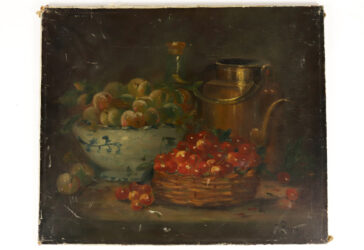 BRUCY (XIX-XXe) Nature morte aux cerises et prunes Huile sur toile. Signé en bas