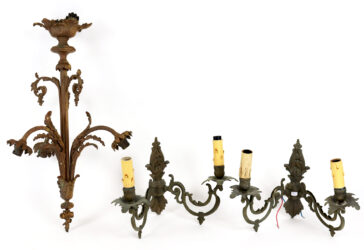 Ensemble comprenant : – un chandelier à 3 lumières en bronze ciselé et doré à décor…