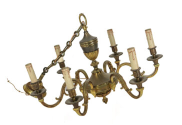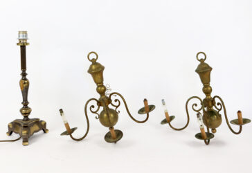 Ensemble comprenant une suspension en bronze et laiton doré à 3 bras de lumière et…