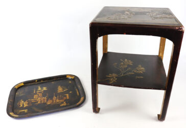CHINE, XXe Bout de canapé en bois naturel laqué rouge sombre et rehaut de dorure