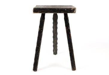 Tabouret de ferme en bois laqué noir, reposant sur trois pieds. Haut. : 52,5 cm -…