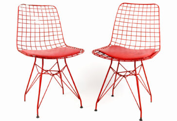 Ensemble comprenant : – une paire de chaises en métal laqué rouge, le dossier et