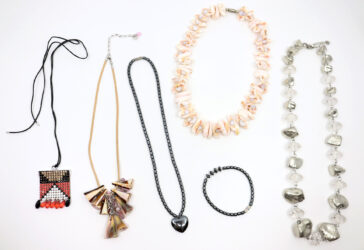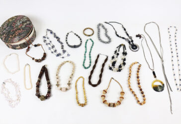 Lot de bijoux fantaisie comprenant divers colliers et bracelets.