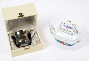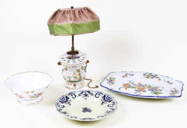 Ensemble comprenant : – une partie de service à thé en porcelaine émaillée à décor…