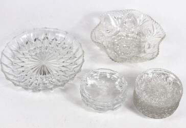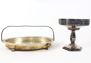 Ensemble comprenant une coupe à fruit en verre, monture en métal argenté à décor