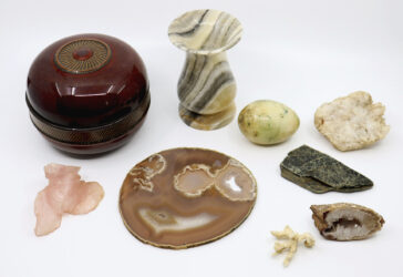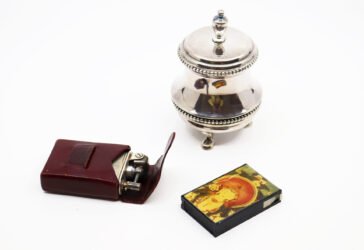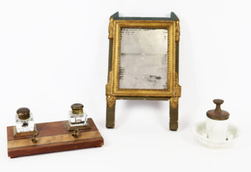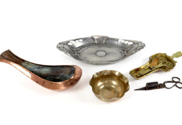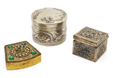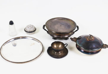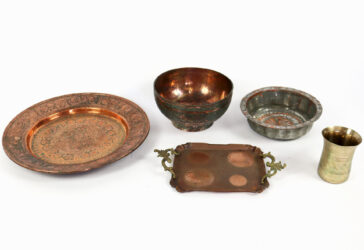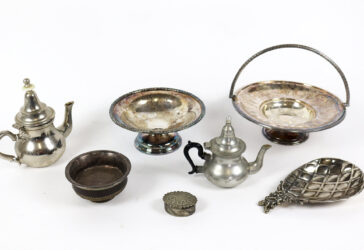 Ensemble comprenant un plateau ovale en métal argenté, un petit bol en métal doré,…