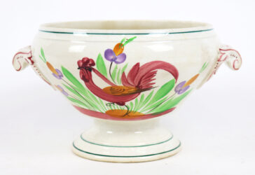 DIGOIN & SARREGUEMINES Soupière sur piédouche en faïence émaillée à décor de coq….