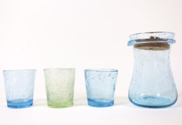 Dans le goût de BIOT Ensemble de 3 verres à eau et une carafe. On y joint 4 verres…