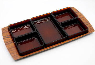 Nécessaire à hors d’œuvre comprenant un plateau en plastique imitant le placage de…