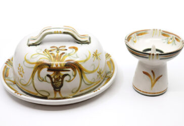 KERALUC à QUIMPER. Circa 1960-1970. Plateau à fromage et sa cloche en grès émaillé…
