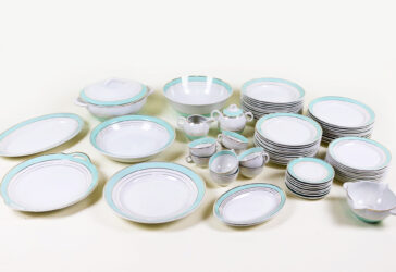 LUNEVILLE Importante partie de service de table modèle « Régence » en porcelaine opaque…
