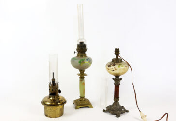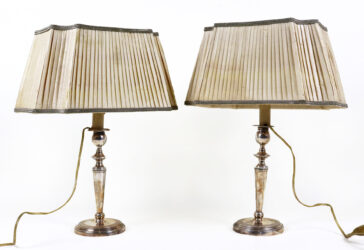 Ensemble comprenant un pied de lampe de forme balustre en métal à patine brune, piètement…