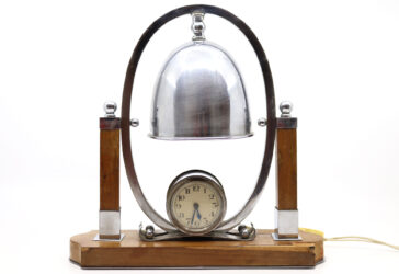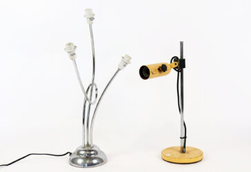 Lampe d’atelier, à fixer sur le plateau, en métal laqué noir et l’abat-jour laqué…