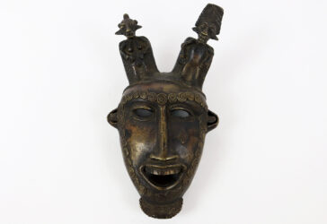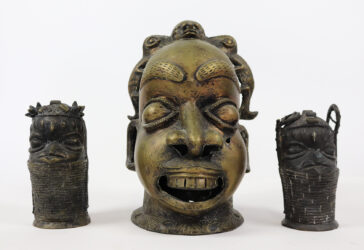 BENIN Ensemble de trois têtes de dignitaires Travail artisanal. Haut. : 17 et 30