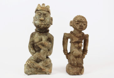 Ensemble de deux statues en pierre KISSI, l’une représentant une femme allaitant