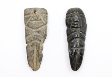 Région d’Acapulco, Mexique Ensemble de deux idoles pendentifs en pierre Mazcala.