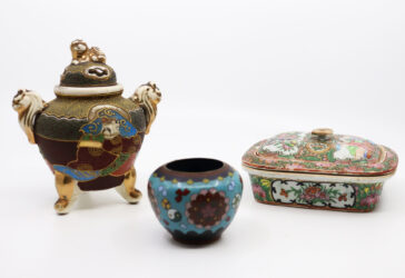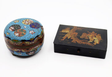 CHINE, XXe Ensemble comprenant un petit vase en émail cloisonné, une boîte à savon…